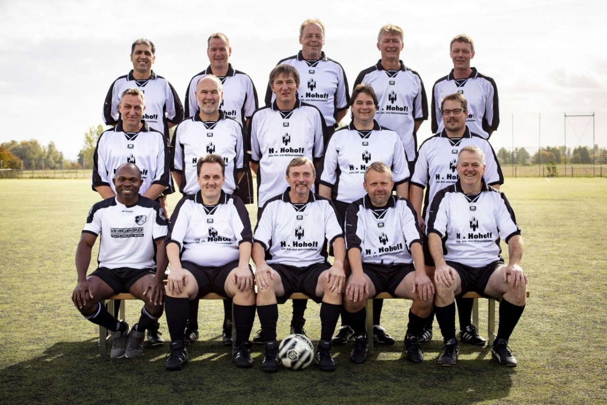 Alte Herren 03.10.2018 H.v.l. Aref Durani, Thomas Ebel, Franz-Josef Berz, Martin Horstmann, Norbert Spierling. M.v.l. Achim Grothe, Michael Volmer, Günther Plattfaut, Andreas Straka, Markus Rogge. V.v.l. Peter Anoko, Holger Kürpick, Wolfgang Gabriel, Michael Körner, Thomas Vickermann.